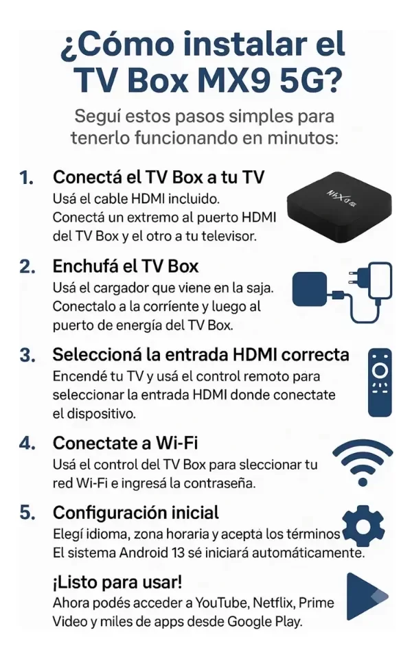 Convierte cualquier televisor (LCD, LED o incluso un TV de tubo con la conexión adecuada) en un centro de entretenimiento de última generación con la TV Box MXQ Pro 8K 5G. Disfruta de una calidad de imagen asombrosa, una velocidad de navegación superior y acceso ilimitado a todas tus plataformas de streaming y aplicaciones favoritas. Es la solución perfecta para llevar tu experiencia de entretenimiento en casa al siguiente nivel.